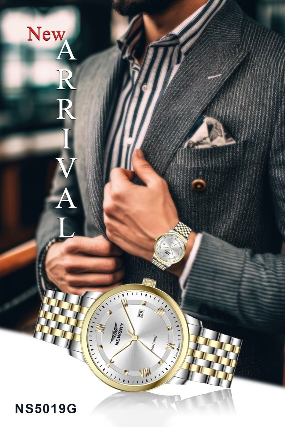 ĐỒNG HỒ NEWSKY NS5019G.S01 Nam máy quartz kính sapphire size 40mm 3ATM