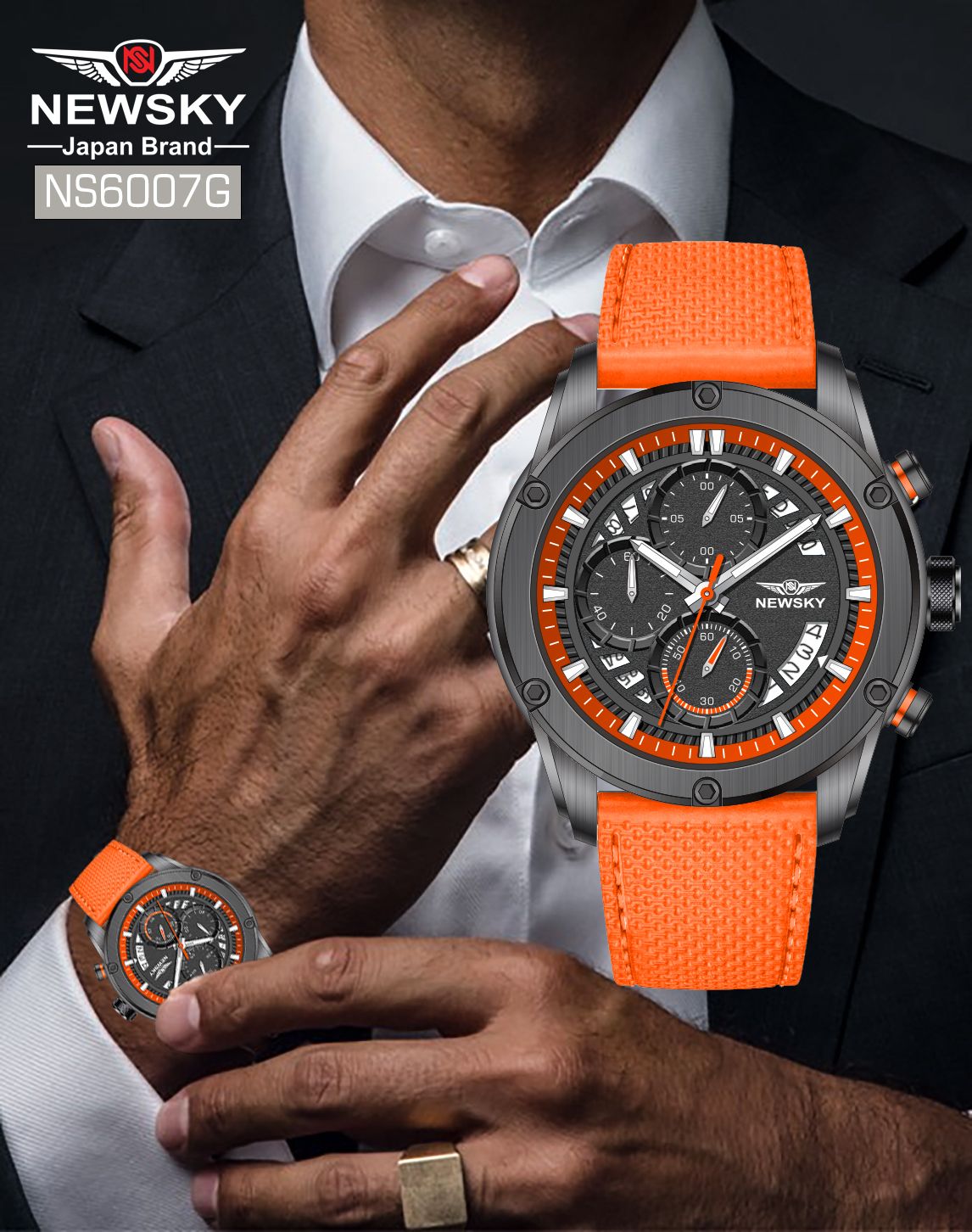 ĐỒNG HỒ NEWSKY NS6007G.L02 Nam máy quartz Kính sapphire size 44mm 5ATM