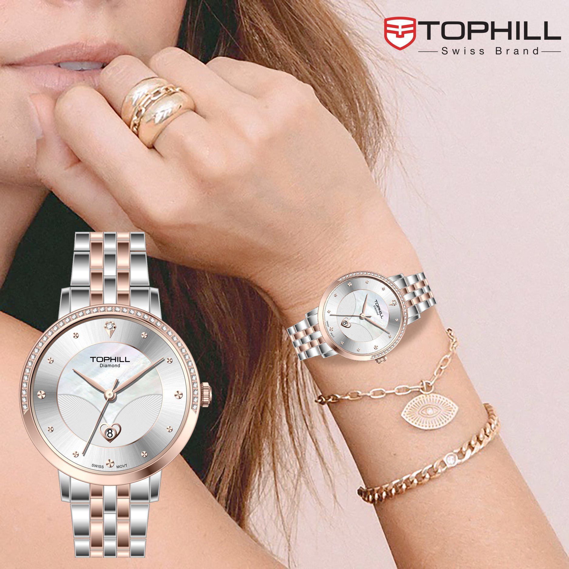 ĐỒNG HỒ TOPHILL TE062L.M7687 Nữ Máy quartz(pin) Dây thép 316L Kính sapphire 3ATM