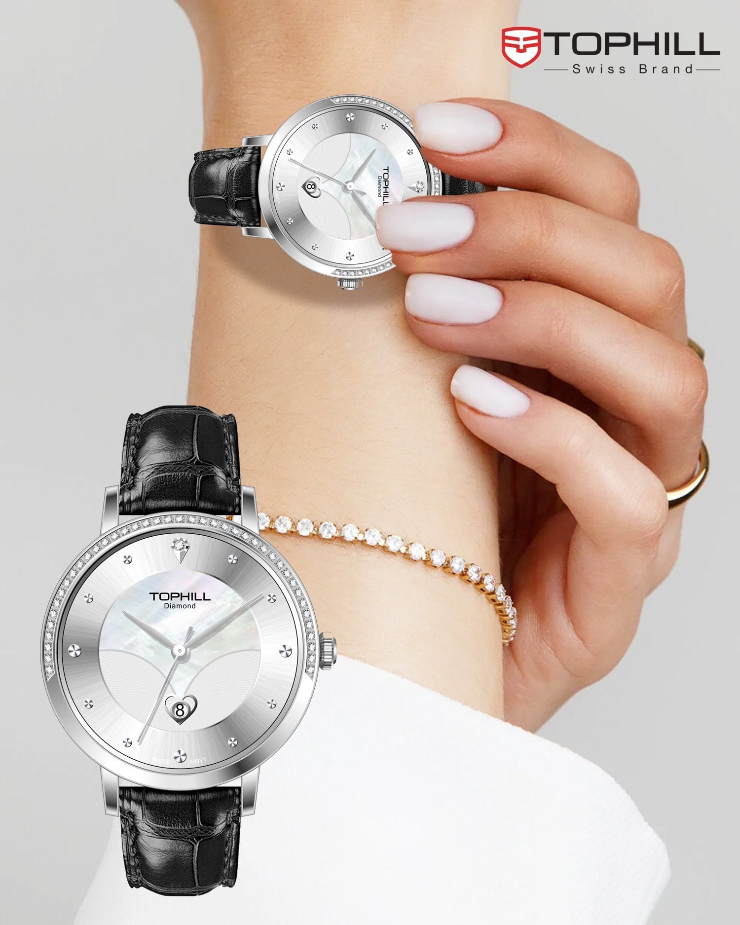 ĐỒNG HỒ TOPHILL TE062L.MB1687 Nữ Máy quartz(pin) Dây da Kính sapphire 3ATM