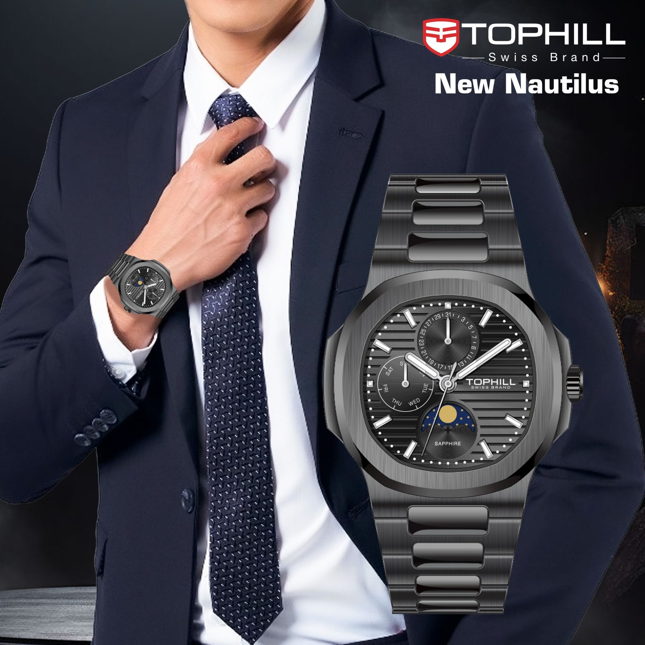 ĐỒNG HỒ TOPHILL TL028G.S5152 Nam máy quartz kính sapphire 5ATM