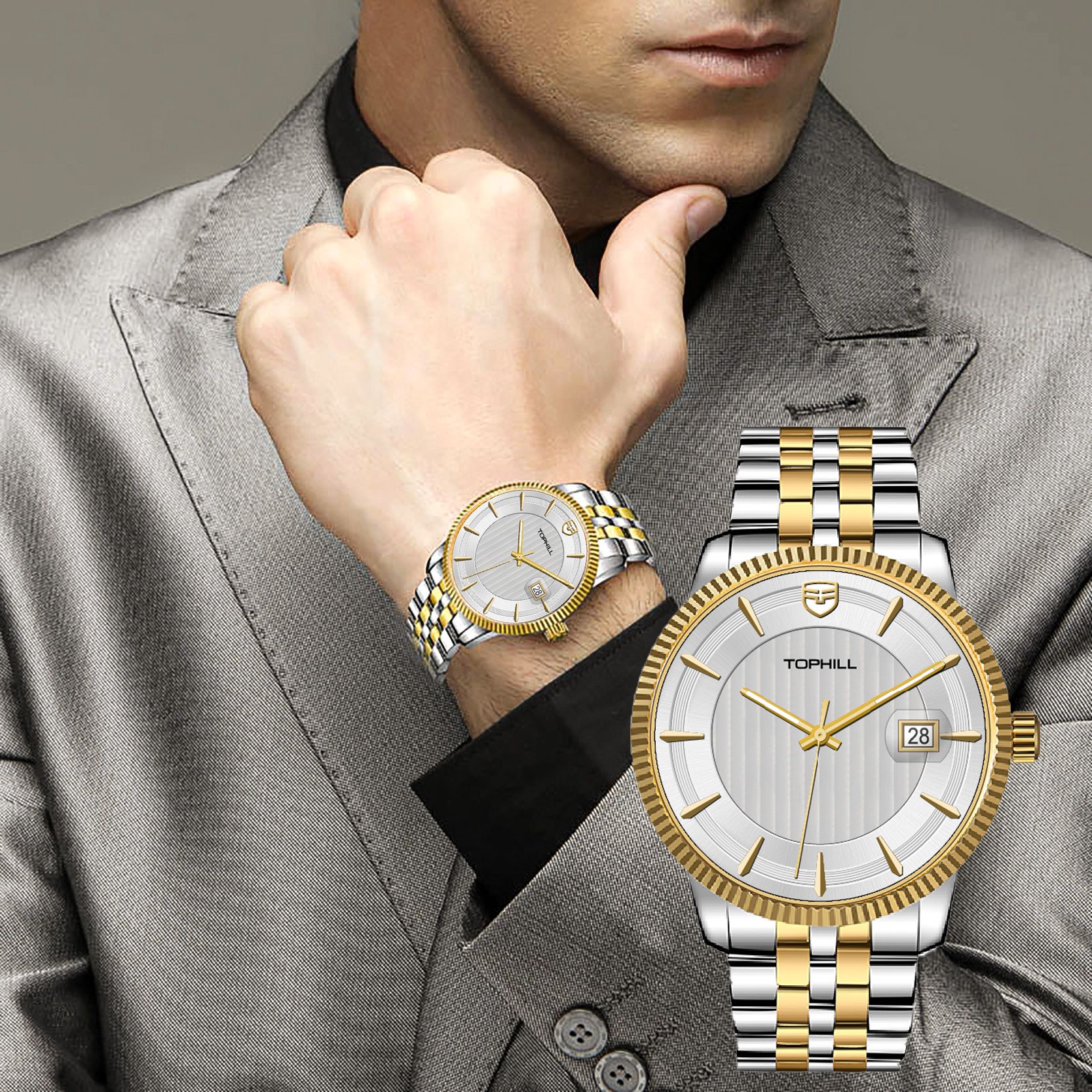 ĐỒNG HỒ TOPHILL TW091G.S6257 Nam máy quartz kính sapphire size 40mm 5ATM