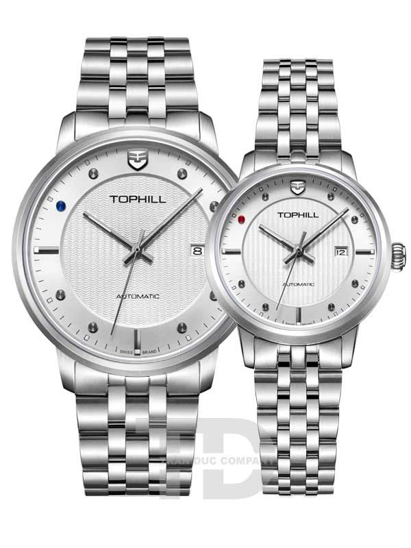 ĐỒNG HỒ TOPHILL TA032G.S1238 + TA032L.S1238 Nam+Nữ dây thép 316L máy Automatic kính Sapphire 5ATM