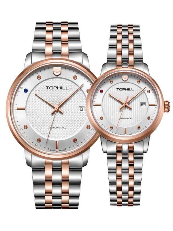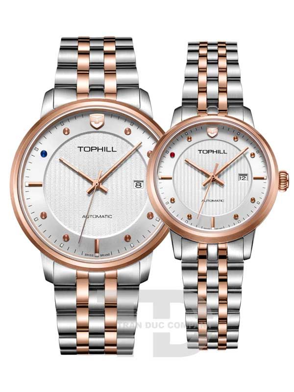 ĐỒNG HỒ TOPHILL TA032G.S7238 + TA032L.S7238 Nam+Nữ dây Thép 316L máy Automatic kính Sapphire 5ATM